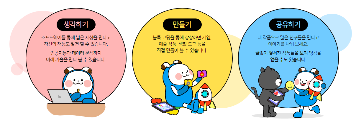 엔트리에서는 생각하고, 만들고, 공유하는 과정을 통해